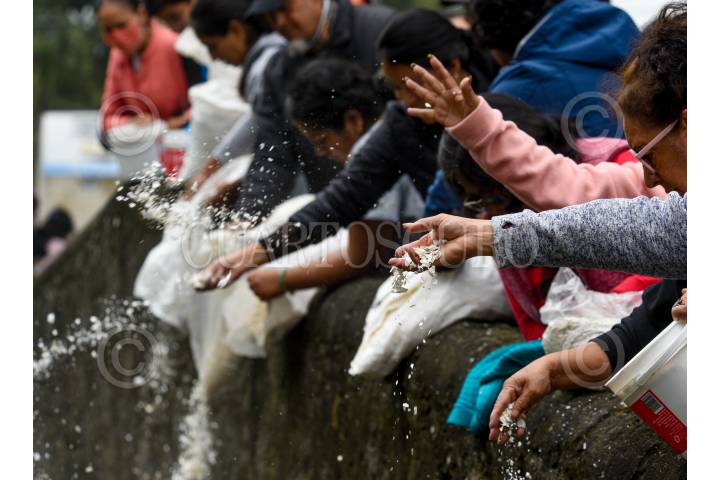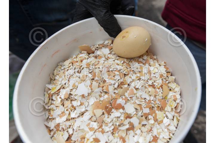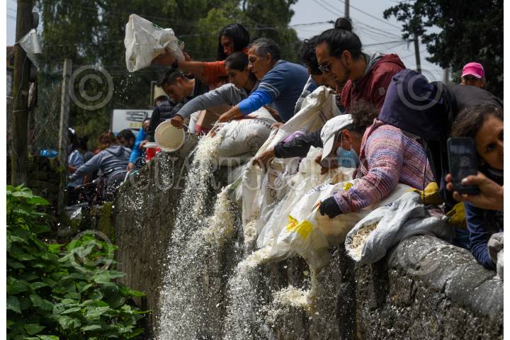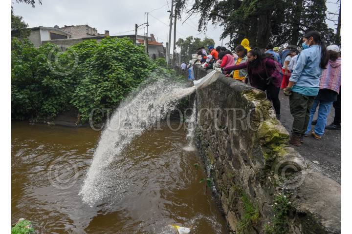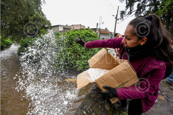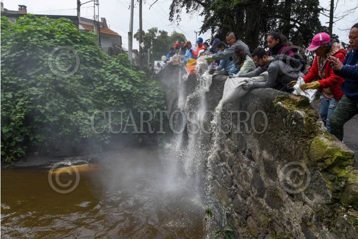 CAPULHUAC, ESTADO DE MÉXICO, 24AGOSTO2024.- Integrantes de H2O Lerma con Encanto AC, habitantes de Capulhuac, Xalatlaco, Santiago Tianguistenco y Lerma se unieron para depositar 4 toneladas de cascarón de huevo el río Acalote para limpiar el agua, este funciona como un biofiltro natural, reponiendo el calcio al suelo y teniendo la función de absorción para que los contaminantes vertidos al agua sean retenidos y evitar que la contaminación se siga propagándose, en el año 2016 comenzaron a trabajar y con el apoyo de la ciudadanía han logrado juntar entre 5 y 7 toneladas mensuales, la recepción de cascarón es de manera permanente y en sus redes sociales estarán publicando las fechas de sus actividades. FOTO: CRISANTA ESPINOSA AGUILAR /CUARTOSCURO.COM