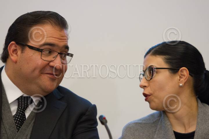 MÉXICO, D.F., 05FEBRERO2015.- Javier Duarte Ochoa, gobernador de Veracruz, y Vanessa Rubio Márquez, Subsecretaria para América Latina y el Caribe de la Secretaría de Relaciones Exteriores, durante la presentación a medios del Foro Iberoamericano de Ciudades. FOTO: IVÁN STEPHENS /CUARTOSCURO.COM