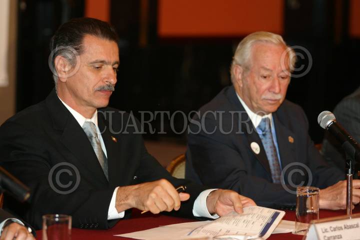 MEXICO, DF, 13DICIEMBRE2005.- Carlos Abascal Secretario de Gobernación, Alberto Núñez Secretario General de la COPARMEX, durante la firma del compromiso con la civilidad democrática celebrado en un hotel de Polanco. FOTO: Leonardo Casas/CUARTOSCURO.COM