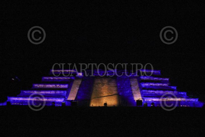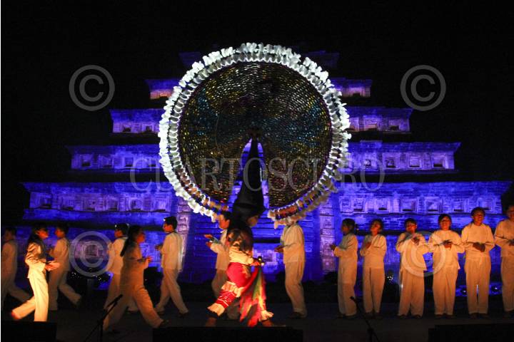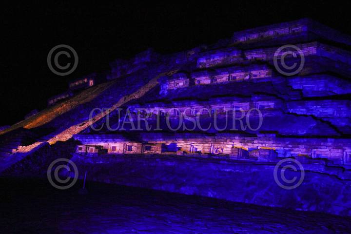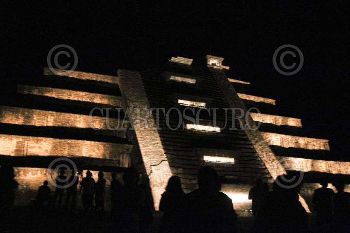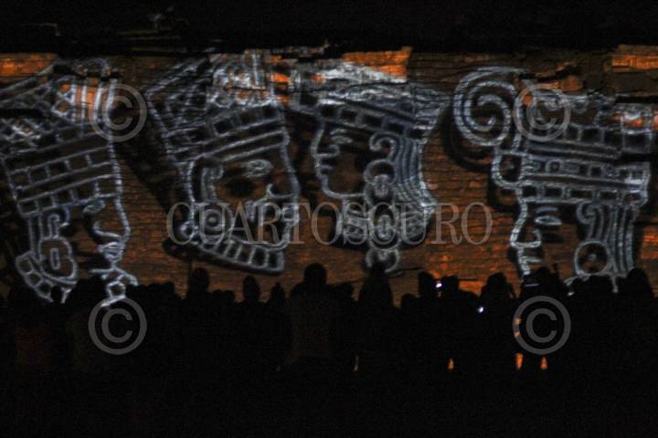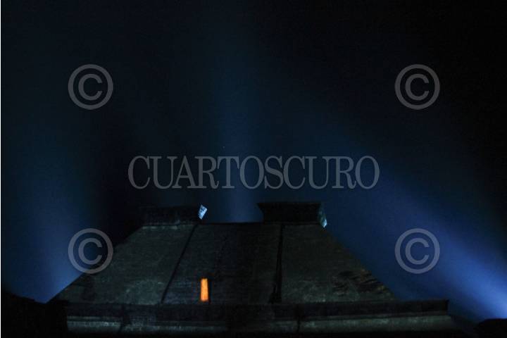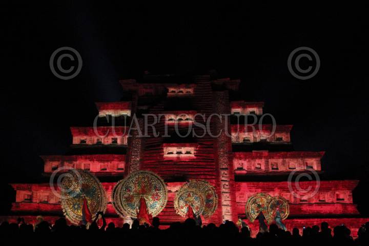 PAPANTLA, VERACRUZ, 17MARZO2012.- El espectáculo de luz y sonido se realizó el día de ayer en la zona arqueológica de Tajin como parte de la cumbre que se realiza en esta semana donde miles de personas acudirán a las pirámides y por la noche a los conciertos que se tienen preparados. FOTO: ENRIQUE ORDÓÑEZ /CUARTOSCURO.COM