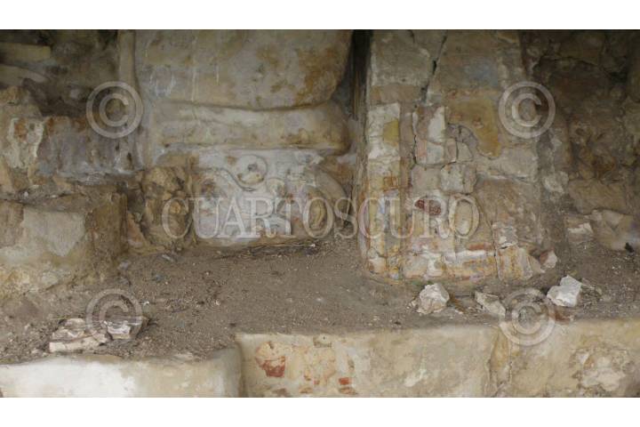 VALLE DE EDZNA, CAMPECHE, 28JUNIO2012.- Especialistas del INAHr realizaron trabajos de preservación de un par de mascarones mayas modelados en estuco. FOTO: DIANA ARANO /INAH /CUARTOSCURO.COM