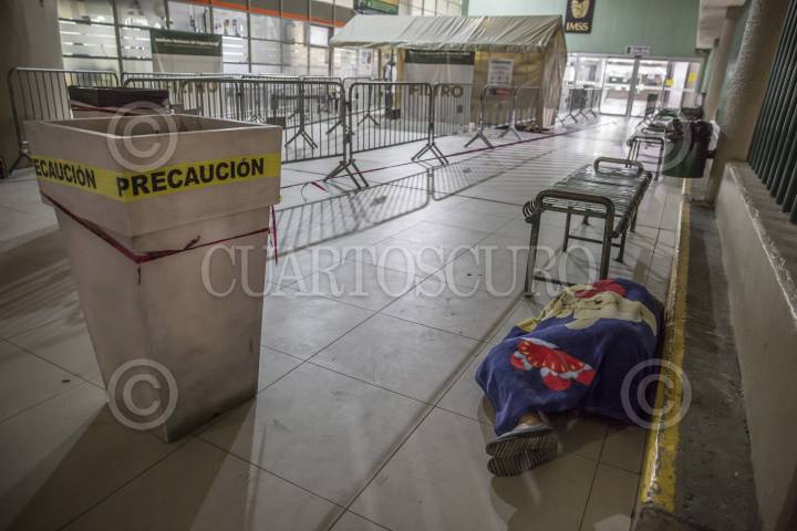 Familiares de pacientes con Covid-19 pasan la noche en la Clínica 20 del IMSS