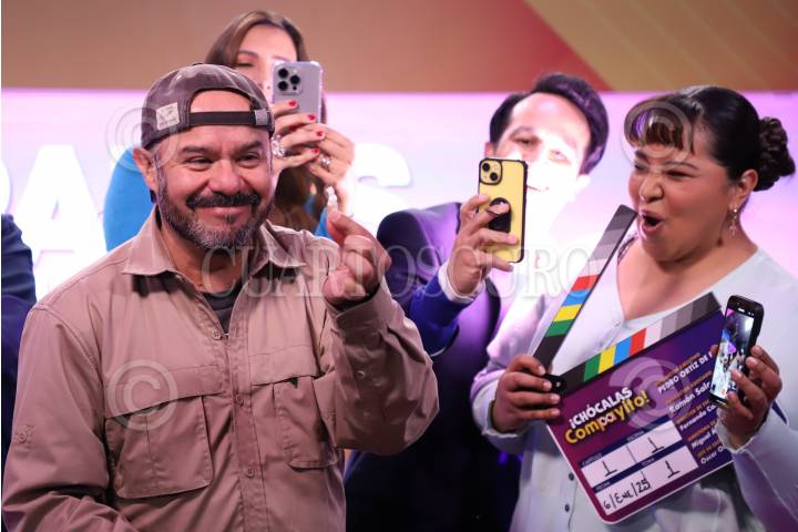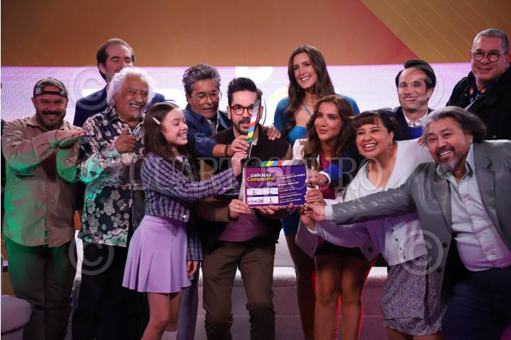 CIUDAD DE MÉXICO, 06ENERO2025.- Encabezados por el productor, Pedro Ortiz de Pinedo, el elenco del programa "Chócalas Compayito" dio el claketazo para el inicio de las grabaciones de si tercera temporada. FOTO: DANIEL AUGUSTO/ CUARTOSCURO.COM