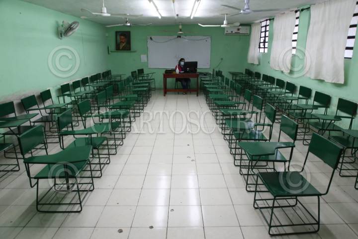 En el estado de Mérida se suspendieron las clases presenciales debido al incremento de casos de Covid-19, el día de hoy solo se presentaron los maestros a las aulas para desde ahí dar las lecciones de manera virtual.