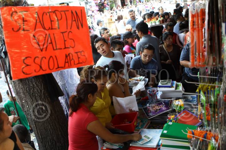 MÉXICO, D.F., 15AGOSTO2010.- Cientos de padres de familia acuden con sus hijos a surtir los útiles escolares a las plazas comerciales que se ubican en el centro de la ciudad ya que el próximo 23 de agosto los estudiantes de kinder, primaria y secundaria volverán a clases. FOTO: RODOLFO ANGULO/CUARTOSCURO.COM
