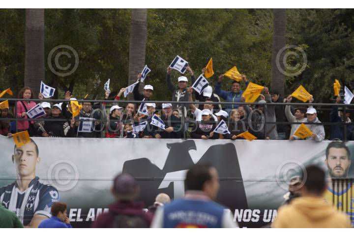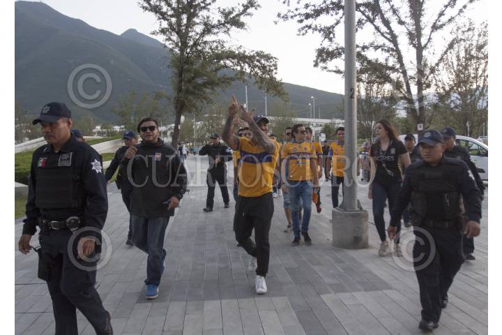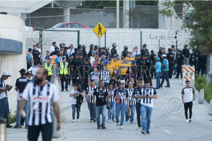 MONTERREY, NUEVO LEÓN, 18NOVIEMBRE2017.- Elementos de seguridad resguardan la llegada de aficionados de Tigres al estadio BBVA Bancomer para presenciar el Clásico Regio 113. FOTO: GABRIELA PÉREZ MONTIEL /CUARTOSCURO.COM