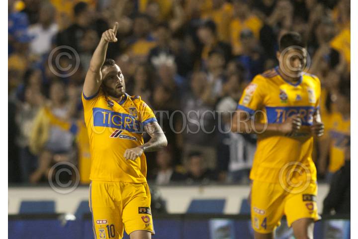 MONTERREY, NUEVO LEÓN, 28ABRIL2018.- André-Pierre Gignac del equipo de los Tigres de la UANL, celebra el gol, ante el equipo de los Rayados del Monterrey, en el estadio Universitario, durante el “Clásico Regio” 116, partido correspondiente a la jornada 17 de la Liga MX, Clausura 2018. Marcador Final: Tigres: 2 - Monterrey: 2 FOTO: GABRIELA PÉREZ MONTIEL /CUARTOSCURO.COM