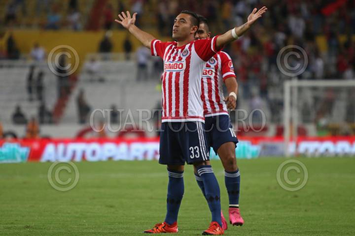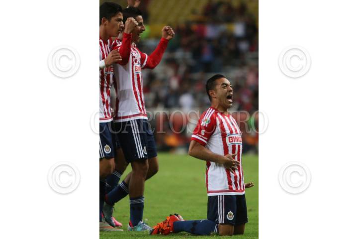GUADALAJARA, JALISCO. 11NOVIEMBRE2015.- El jugador de Chivas Marco Fabián, celebra su gol durante el encuentro, esto en partido correspondiente a la Jornada 14 del Torneo Apertura 2015 de la Liga MX, en donde se enfrentaron los equipos de los Zorros del Atlas frente a las Chivas de Guadalajara y en donde las Chivas ganan el clásico tapatío 1-0, en partido que se jugo en el Estadio Jalisco. FOTO: FERNANDO CARRANZA GARCIA / CUARTOSCURO.COM