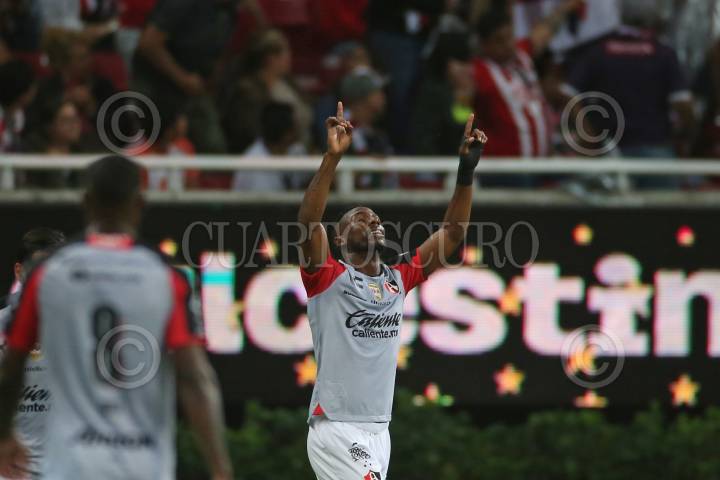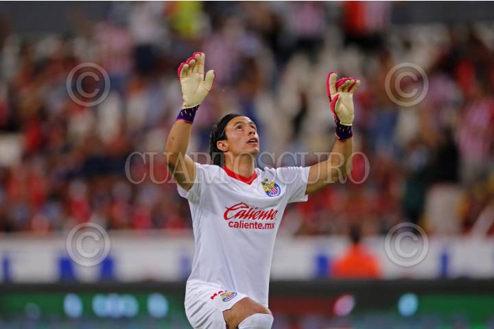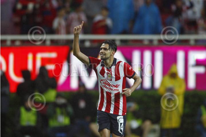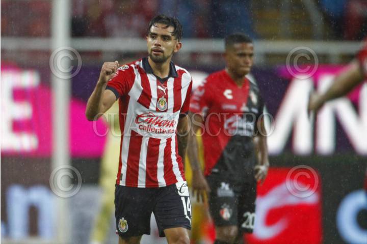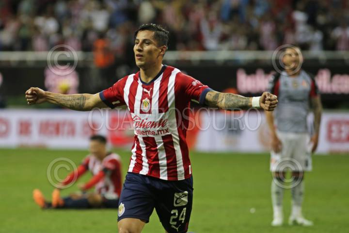 Carlos Cisneros, jugador de Chivas, celebra su anotación, esto en partido correspondiente a la Jornada 8 del Torneo Apertura 2022 de la Liga BBVA MX.