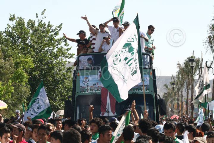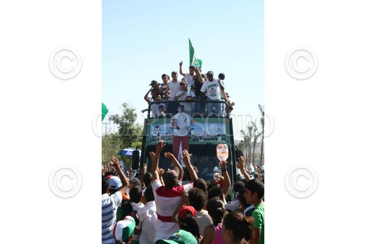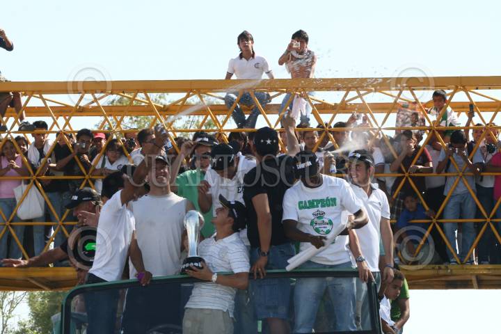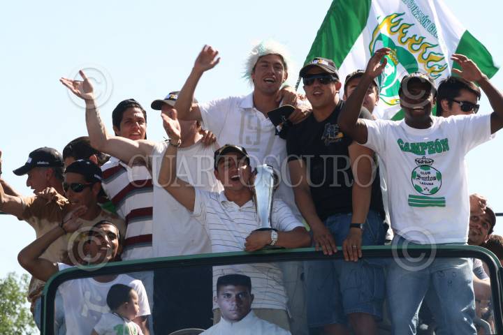 LERDO, DURANGO O2JUNIO2008.- Despúes de que el equipo de Santos se coronara como campeones del torneo de clausra 2008 al derrotar al equipo de cruz azul, esta tarde se dieron cita en el municipio de Lerdo para hacer un recorrido en un camión descubierto hacia Torreón. FOTO: SASHENKA GUTIERREZ/CUARTOSCURO.COM
