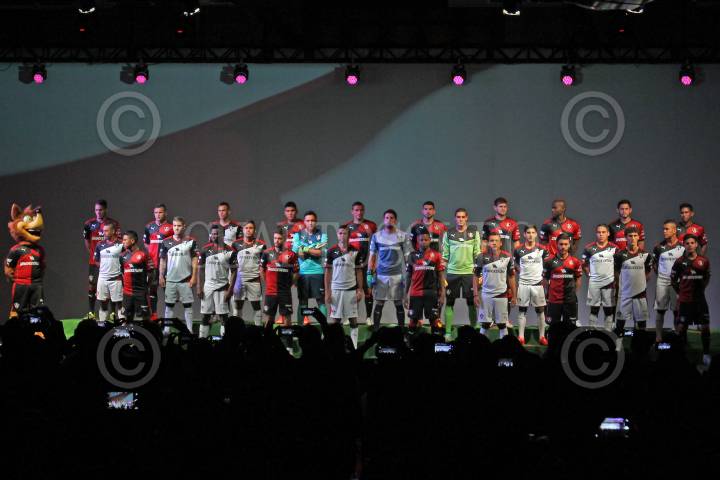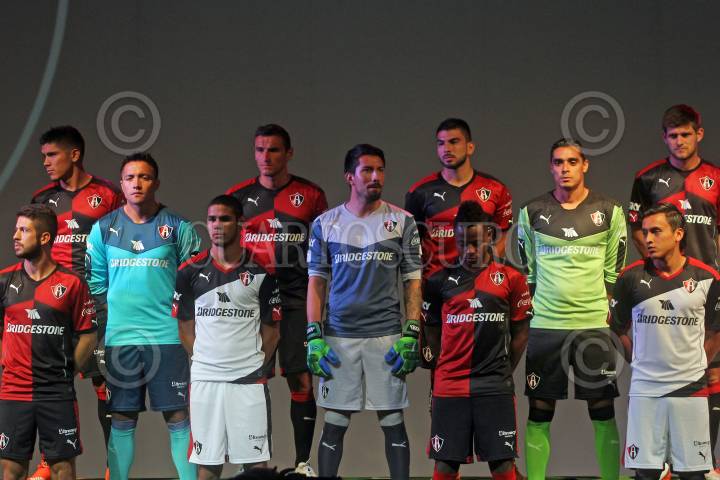 GUADALAJARA, JALISCO, 22JULIO2015.-Esta noche en un conocido hotel de la ciudad el equipo de los Rojinegros del Atlas llevo a cabo la presentación del nuevo Jersey con el que jugara el próximo Torneo Clausura 2015 y apertura 2016 de la Liga MX. FOTO: FERNANDO CARRANZA GARCIA / CUARTOSCURO.COM