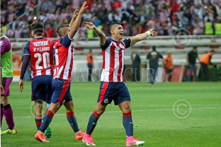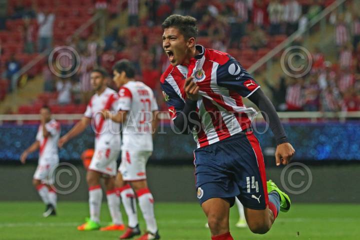 ZAPOPAN, JALISCO. 18MARZO2017.- Ángel Zaldívar, jugador de Chivas celebra su anotación, en partido correspondiente a la Jornada 11 del Torneo Clausura 2017, en donde se enfrentan las Chivas de Guadalajara frente a los Tiburones Rojos del Veracruz, en partido que se lleva a cabo en el Estadio Chivas, el marcador al final del partido fue de 2-0 a favor del equipo local. FOTO: FERNANDO CARRANZA GARCIA / CUARTOSCURO.COM