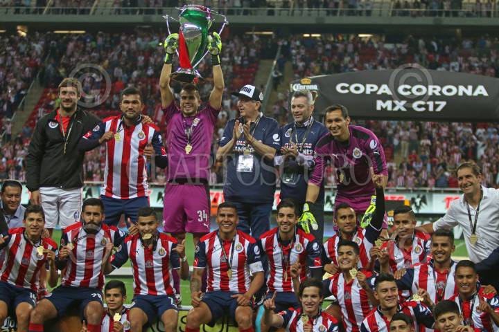ZAPOPAN, JALISCO. 19ABRIL2017.-Jugadores de Chivas celebran el campeonato, al derrotar en tanda de penales a Morelia en la Final de la Copa MX, del Torneo Clausura 2017, en partido que se jugo en el Estadio Chivas. FOTO : FERNANDO CARRANZA GARCIA / CUARTOSCURO.COM