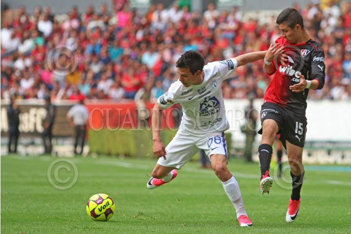 GUADALAJARA, JALISCO. 22ABRIL2017.- Luis Robles, jugador de Atlas disputa un balón a Emmanuel García de Pachuca, en partido correspondiente a la Jornada15 del Torneo Clausura 2017 de la Liga MX, en donde se enfrentan los Zorros del Atlas frente a los Tuzos del Pachuca, en encuentro que se lleva a cabo en el Estadio Jalisco.F OTO : FERNANDO CARRANZA GARCIA / CUARTOSCURO.COM