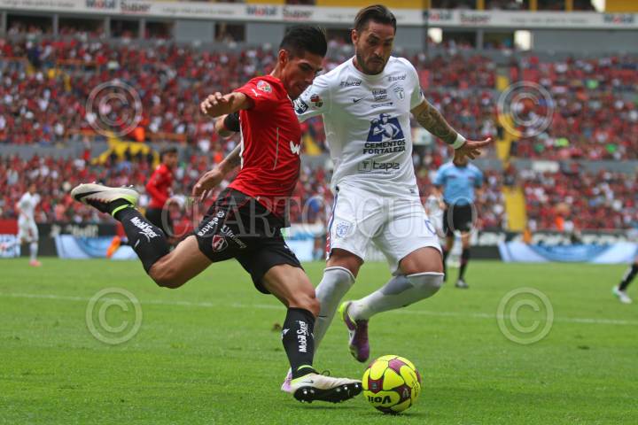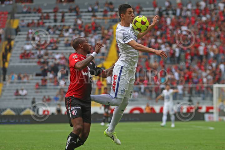 GUADALAJARA, JALISCO. 22ABRIL2017.- Roberto Alvarado, jugador de Pachuca disputa un balón a Leiton Jiménez de Atlas, en partido correspondiente a la Jornada15 del Torneo Clausura 2017 de la Liga MX, en donde se enfrentan los Zorros del Atlas frente a los Tuzos del Pachuca, en encuentro que se lleva a cabo en el Estadio Jalisco. FOTO : FERNANDO CARRANZA GARCIA / CUARTOSCURO.COM