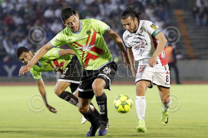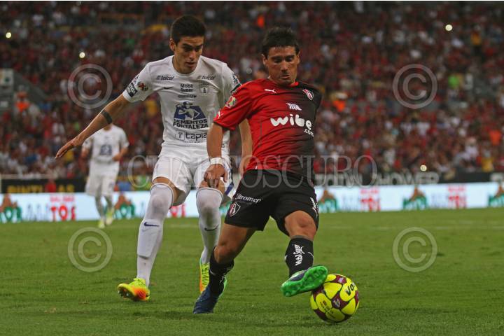 GUADALAJARA, JALISCO. 22ABRIL2017.- Matías Alustiza, jugador de Atlas disputa un balón a Alexis Peña de Pachuca, en partido correspondiente a la Jornada15 del Torneo Clausura 2017 de la Liga MX, en donde se enfrentan los Zorros del Atlas frente a los Tuzos del Pachuca, en encuentro que se lleva a cabo en el Estadio Jalisco. FOTO : FERNANDO CARRANZA GARCIA / CUARTOSCURO.COM