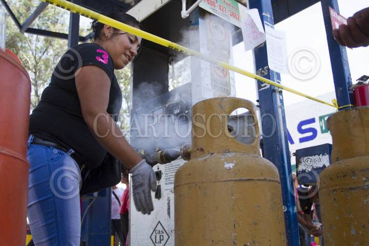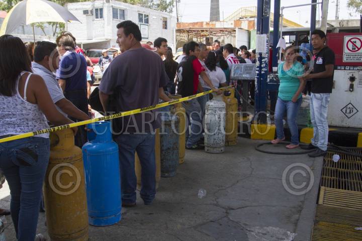 LOS REYES LA PAZ, ESTADO DE MÉXICO., 17AGOSTO2014.- Habitantes de Los Reyes La paz, lograron que se les vendiera gas LP a granel, luego de protestar y realizar un cierre parcial de la carretera federal México-Puebla, para exigir a Roberto Barrera Rivera, Director General de Gas LP de la Secretaria de Energía, los deje de hostigar con amenazas de clausura a las gaseras de esta zona que surten el combustible. FOTO: GUILLERMO PEREA /CUARTOSCURO.COM