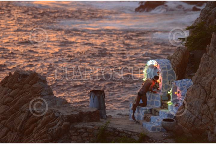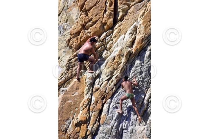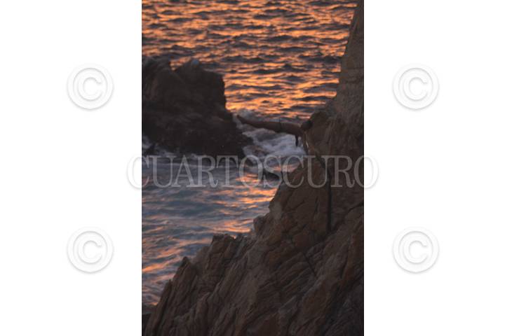 ACAPULCO, GUERRERO, 11SEPTIEMBRE2017.- No obstante el mal tiempo y las crisis que agobian al bello puerto, los clavadistas de "La Quebrada" mantienen la tradición que ha distinguido a este icono del pacífico mexicano. Leyenda viviente de los años dorados del puerto, siempre con la esperanza de que regrese nuevamente el turista y los premie con un aplauso. El abismo que lo separa del mar, no representa obstáculo alguno para estas figuras emblemáticas de que han dejado su estela a través de las décadas. El acantilado que los separa del mar, de la gloria, es para ellos su sustento, una forma de vida que requiere convivir con el peligro, pero también con la naturaleza. Su vuelo a través de 45 metros, representa la imagen que dio fama a Acapulco a nivel mundial desde 1934, y que contra viento y marea, continúa vigente. FOTO: BERNANDINO HERNÁNDEZ /CUARTOSCURO.COM
