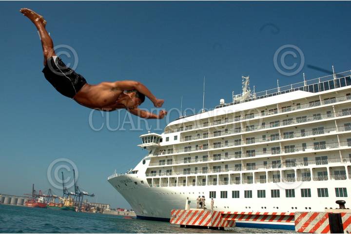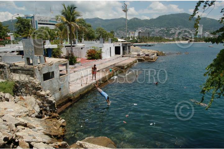 ACAPULCO, GUERRERO, 02SEPTIEMBRE2009.- Jóvenes de la costa ante la temperatura alta del calor optan por refrescarse tirándose un clavado en las aguas de la Bahía. FOTO: MARINO D. VALDEZ/CUARTOSCURO.COM