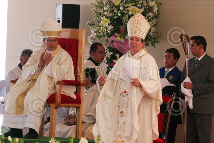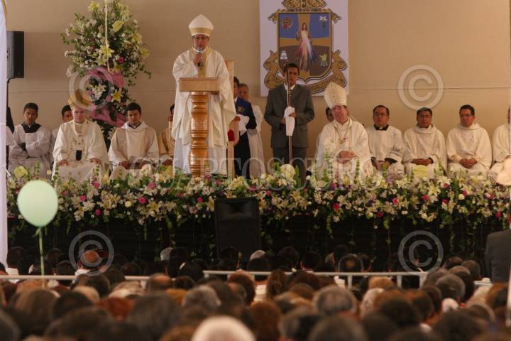LOS REYES LA PAZ, ESTADO DE MÉXICO, 07MARZO2011.- Héctor Luis Morales Sánchez fue nombrado el día de hoy como nuevo obispo de la Diócesis de Nezahualcóyotl, una de las más grandes en el Estado de México, durante la homilía masiva realizada en el estadio de Béisbol de los Reyes la Paz, fue acompañado por Christopher Pierr, nuncio apostólico y Carlos Aguiar Retes, presidente de la Conferencia del Episcopado Mexicano. FOTO: SAÚL LÓPEZ/CUARTOSCURO.COM