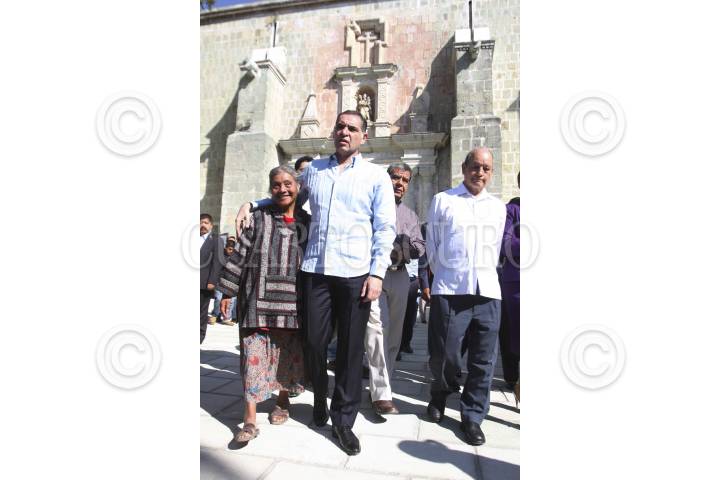 OAXACA, OAXACA, 24ENERO2012.- El gobierno del Estado concluyó los trabajos de remodelación del atrio de la Iglesia del Carmen Alto, perteneciente a la diócesis de Antequera Oaxaca. La entrega formal fue encabezada por el gobernador, Gabino Cué Monteagudo quien estuvo acompañado de José Luis Chávez Botello arzobispo de la diócesis, así como diversos clérigos y funcionarios estatales. La obra tuvo una inversión aproximada de 2 millones 500 mil pesos. FOTO: JORGE PÉREZ ALFONSO/CUARTOSCURO.COM