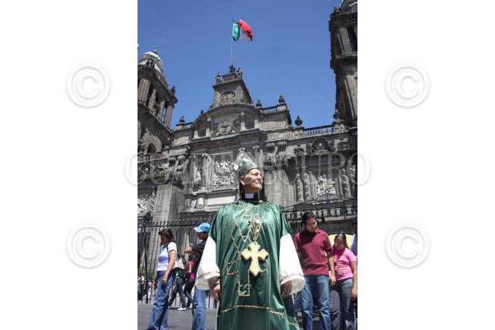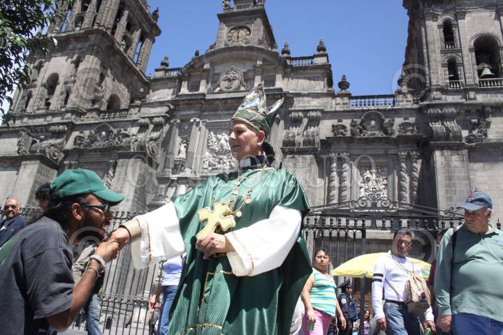 MÉXICO, D.F., 12ABRIL2009.- Una mujer vestida de obispo protesta a las afueras de la Catedral Metropolitana encontra de los padres y eclesiásticos pederastas. FOTO: RICARDO CASTELAN/CUARTOSCURO.COM