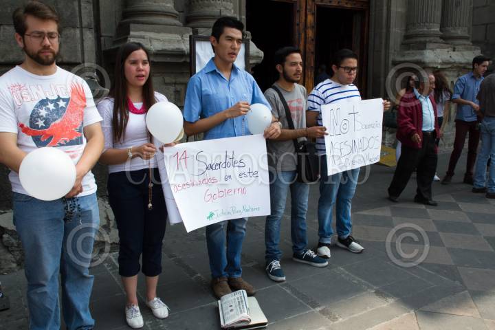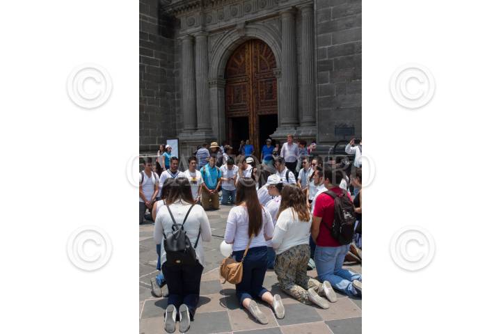 CIUDAD DE MÉXICO, 21MAYO2017.- Un grupo de jóvenes católicos se manifestaron para pedir justicia y oraron por la salud del Padre José Miguel Machorro Alcalá afuera de la Catedral Metropolitana. FOTO: MOISÉS PABLO /CUARTOSCURO.COM
