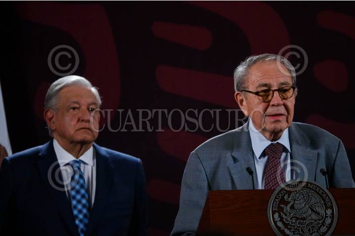 CIUDAD DE MÉXICO, 06JUNIO2024.- Andrés Manuel López Obrador, presidente de México, y Jorge Alcocer, secretario de Salud, durante la conferencia de prensa matutina en la que se realizó la entrega de tarjetas para los Comités de Salud IMSS-Bienestar en los estados del norte de la República (Tamaulipas, Baja California, Baja California Sur, Sinaloa, Sonora, Zacatecas, por mencionar algunos) FOTO: GALO CAÑAS/CUARTOSCURO.COM
