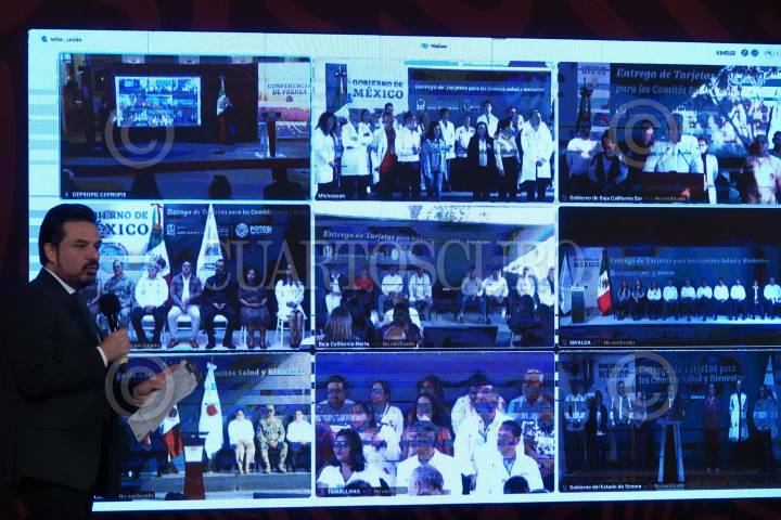 CIUDAD DE MÉXICO, 06JUNIO2024.- Andrés Manuel López Obrador, presidente de México, encabezó la conferencia de prensa matutina en la que se realizó la entrega de tarjetas para los Comités de Salud IMSS-Bienestar en los estados del norte de la República (Tamaulipas, Baja California, Baja California Sur, Sinaloa, Sonora, Zacatecas, por mencionar algunos) FOTO: GALO CAÑAS/CUARTOSCURO.COM
