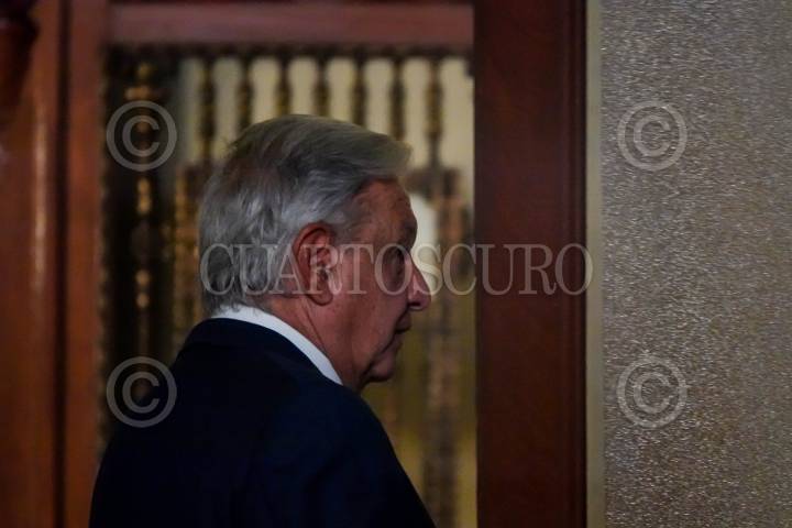CIUDAD DE MÉXICO, 06JUNIO2024.- Andrés Manuel López Obrador, presidente de México, se retira tras encabezar la conferencia matutina desde Palacio Nacional. FOTO: GALO CAÑAS/CUARTOSCURO.COM