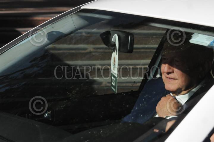 Andrés Manuel López Obrador, presidente de México, sale de la reunión con empresarios que sostuvo esta tarde.