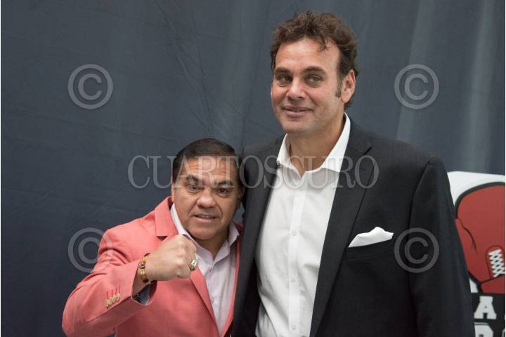 CIUDAD DE MÉXICO, 07MARZO2017.- Humberto "La Chiquita" González, ex boxeador peso minimosca, y David Faitelson, periodista deportivo, y durante el lanzamiento de la Academia CONADE, un programa de detección y formación de deportistas de alto rendimiento. FOTO: TERCERO DÍAZ/ CUARTOSCURO.COM