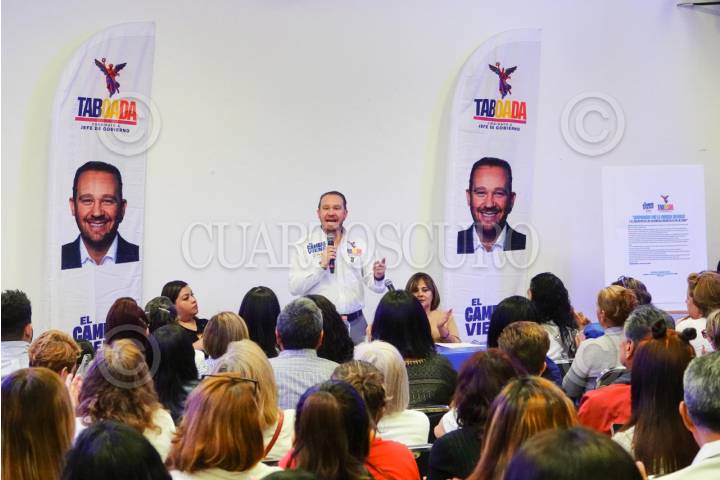 Santiago Taboada, candidato electo a la alcaldía de Benito Juárez, durante la reunión de la UNACDMX