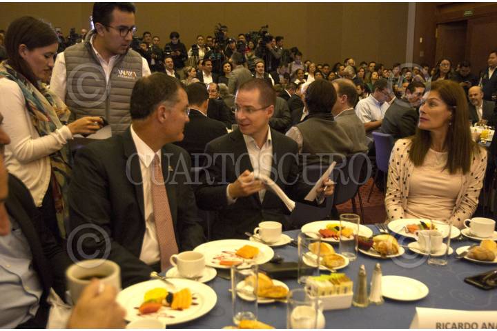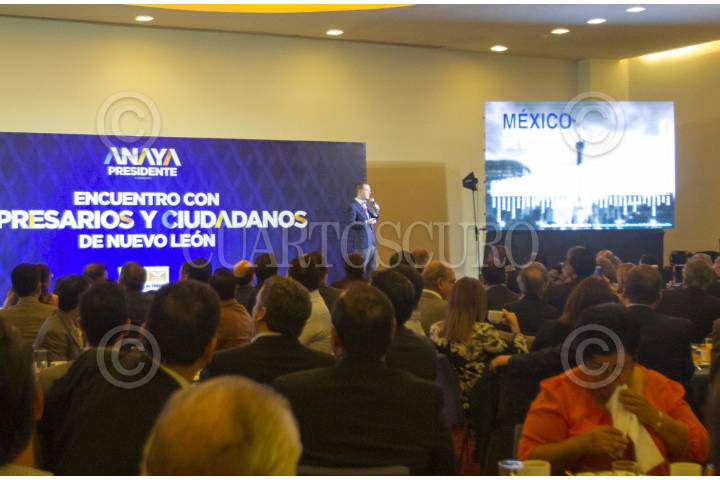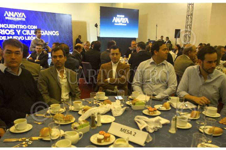 SAN PEDRO, NUEVO LEÓN, 11ABRIL2018.- El candidato a la presdicencia Ricardo Anaya, sostuvo un desayuno con militantes de los partidos que confirman la coalición México al Frente, como Luis Donaldo Colosio Riojas y Rebeca Clouthier, además de empresarios en la entidad. FOTO: GABRIELA PÉREZ MONTIEL /CUARTOSCURO.COM