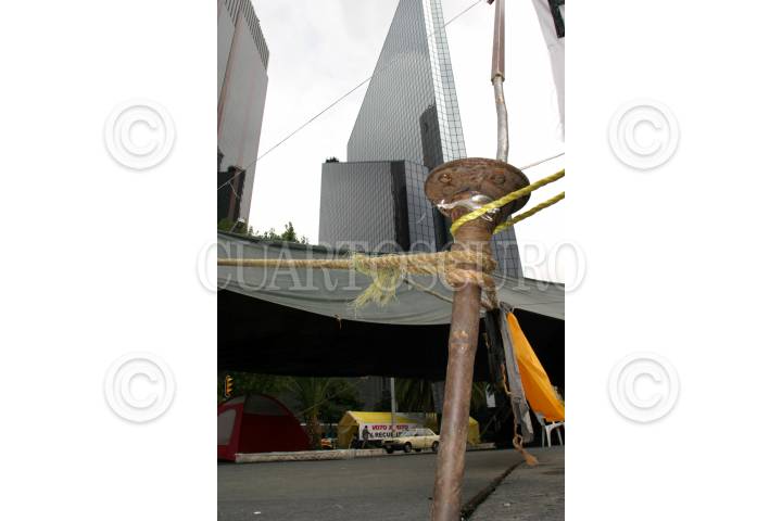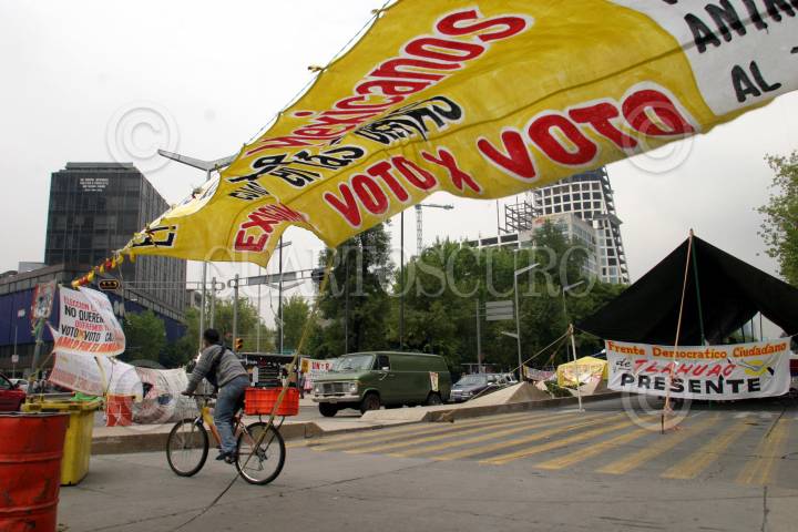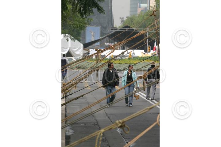 MEXICO, D.F., 07AGOSTO2006.- Cada vez luce mas atiborrrado de casa de campaña, lonas y cuerdas para sosternerlas, en el Paseo de la Reforma, cuando se cumplen más de una semana de plantón por parte de los simpatizantes de la coalición Por el Bien de Todos. FOTO: Moisés Pablo/CUARTOSCURO.COM