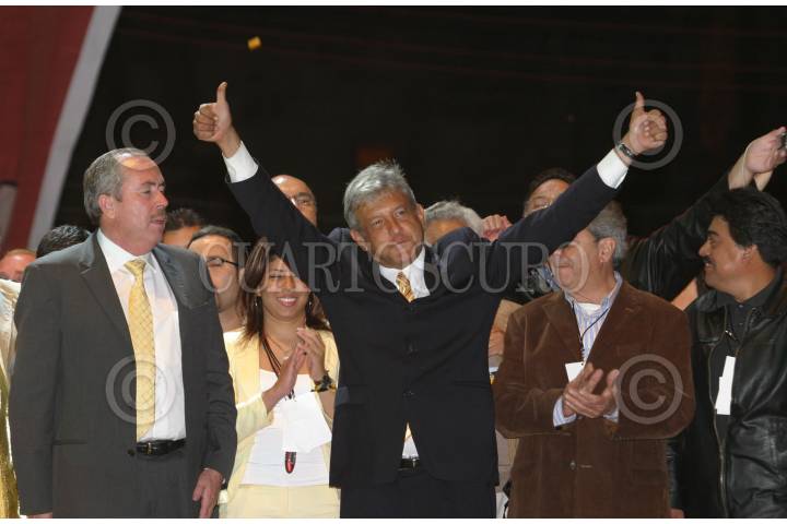 MEXICO D.F. 02JULIO2006.- Andrés Manuel López Obrador, candidato presidencial del PRD agradece a sus simpatizantes su apoyo en el zocalo capitalino. FOTO: Nelly Salas/CUARTOSCURO.COM