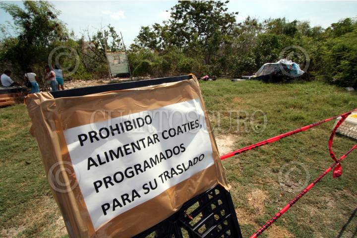 CANCÚN QUINTANA ROO, 14SEPTIEMBRE2009.- Autoridades ambientales rescatan del predio donde fueron envenenados 45 coaties , pequeños mamíferos parecidos a los mapaches. Los pocos que quedaron vivos de la manada serán trasladados a un parque ecológico. FOTO: AMARANTA PRIETO/CUARTOSCURO.COM