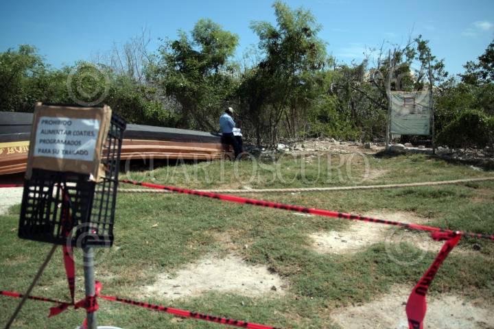 CANCÚN, QUINTANA ROO, 15SEPTIEMBRE2009.- Debido a la denuncia oportuna de la sociedad civil y de ambientalistas se logra que la PROFEPA resguarde mediante restrinciones el terreno en donde se realiza ecocidio en manglares y mortandad de Coaties. Informan que hasta el momento han sido encontrado 75 ejemplares de estos animales muertos y al menos una docena de decesos en aves y mapaches; ante tal situación se interpuso una formal demanda en la PGR a Paty de la Peña como la responsable de tal matanza al ecosistema ya que es señalada como la responsable del acto al envenenar el area con CANCÚN, QUINTANA ROO, 15SEPTIEMBRE2009.- Debido a la denuncia oportuna de la sociedad civil y de ambientalistas se logra que la PROFEPA resguarde mediante restrinciones el terreno en donde se realiza ecocidio en manglares y mortandad de Coaties. Informan que hasta el momento han sido encontrado 75 ejemplares de estos animales muertos y al menos una docena de decesos en aves y mapaches; ante tal situación se interpuso una formal demanda en la PGR a Paty de la Peña como la responsable de tal matanza al ecosistema ya que es señalada como la responsable del acto al envenenar el área con sulfuro de zinc. FOTO: MARCO POLO GUZMÁN HERNÁNDEZ/CUARTOSCURO.COMsulfuro