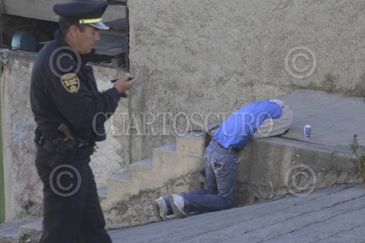 NAUCALPAN, ESTADO DE MÉXICO, 18FEBRERO2013.- Un hombre fue encontrado sin vida hincado con dos impacto de arma de fuego en la cabeza sobre la calle Díaz y Calzada de Guadalupe en San Miguel Totolinga. FOTO: LUIS CARBAYO /CUARTOSCURO.COM