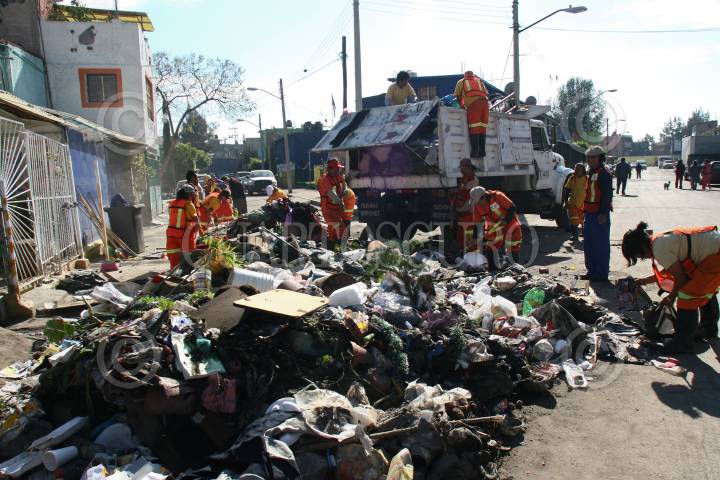 MÉXICO, D.F., 09FEBRERO2010.- Trabajadores de limpia del Distrito Federal trabajan recolectando los restos de basura que dejo la inundación en la colonia Arenal. FOTO: SAÚL LÓPEZ/CUARTOSCURO.COM