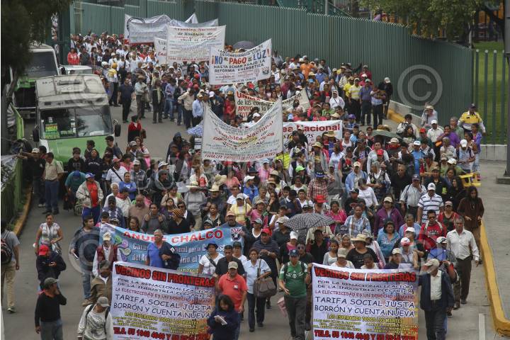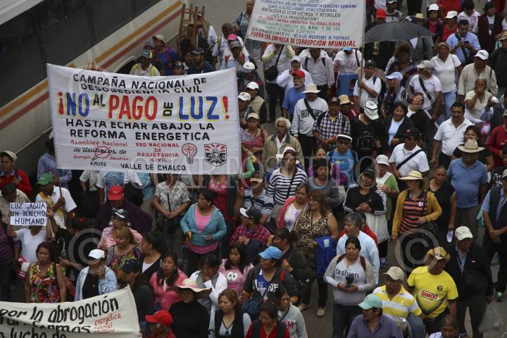 MÉXICO, D.F., 23JULIO2015.- Integrantes Asamblea Nacional de Usuarios de Energía Eléctrica (ANUEE) y ex electricistas del SME, marcharon de la PROFECO hacia las instalaciones de la CFE y SEGOB, para exigir un cese a las altas tarifas de luz y una renacionalización de la industria eléctrica. FOTO: SAÚL LÓPEZ /CUARTOSCURO.COM