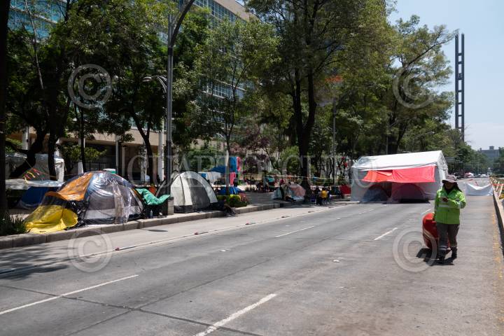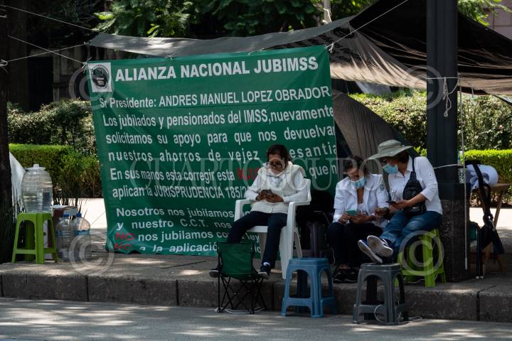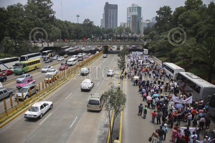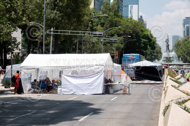 Bloqueo de jubilados del IMSS en ambos carriles de Paseo de la Reforma.