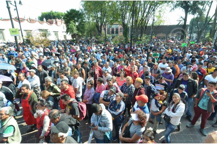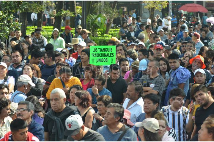 CIUDAD DE MÉXICO, 27NOVIEMBRE2019.- Tianguistas y locatarios de mercado de la alcaldía de Coyoacán se manifestaron en la explanada delegacional para pedir la renuncia del alcalde Manuel Negrete, a quien señalan de ser el culpable de diversos abusos, como el cobro de cuotas excesivas. FOTO: ARMANDO MONROY /CUARTOSCURO.COM