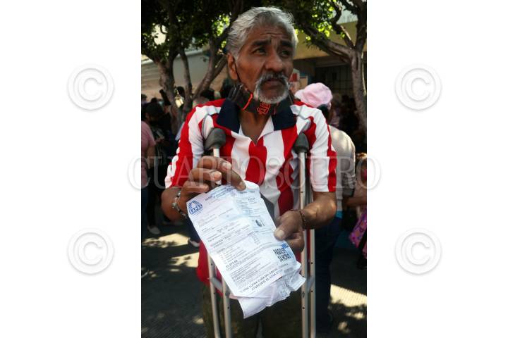 Personas de la tercera edad se formaron en la alcaldía de Xochimilco para obtener su tarjeta del Bienestar.