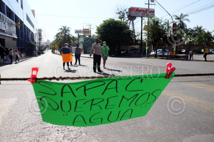 Vecinos de la colonia Teopanzolco bloquean una avenida de la ciudad en demanda del servicio de agua potable.