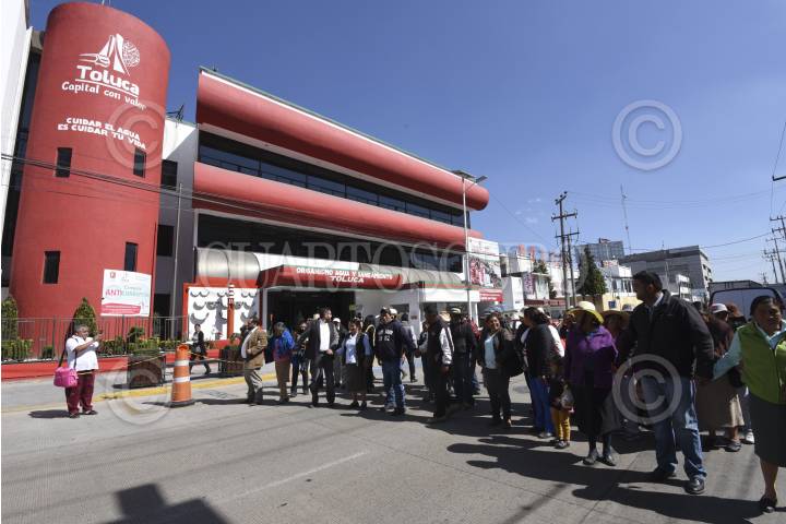 TOLUCA, ESTADO DE MÉXICO, 28NOVIEMBRE2016.- Vecinos de San Diego de los Padres se manifestaron frente al Organismo de Agua y Saneamiento, para exigir les brinden el servicio de agua y les dejen de realizar cobros excesivos, sin contar con vital liquido. FOTO: PILAR AGUILAR /CUARTOSCURO.COM