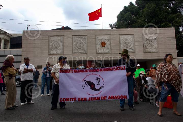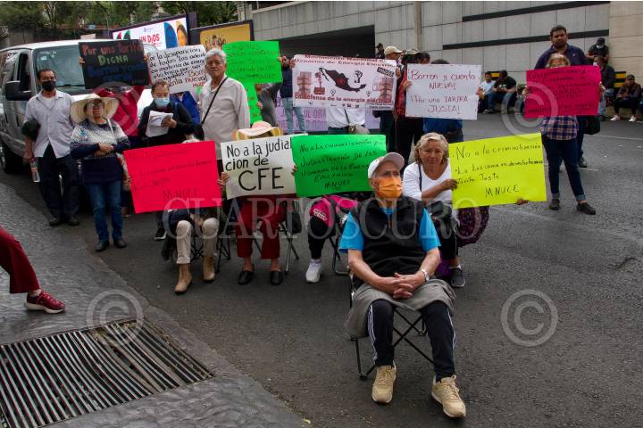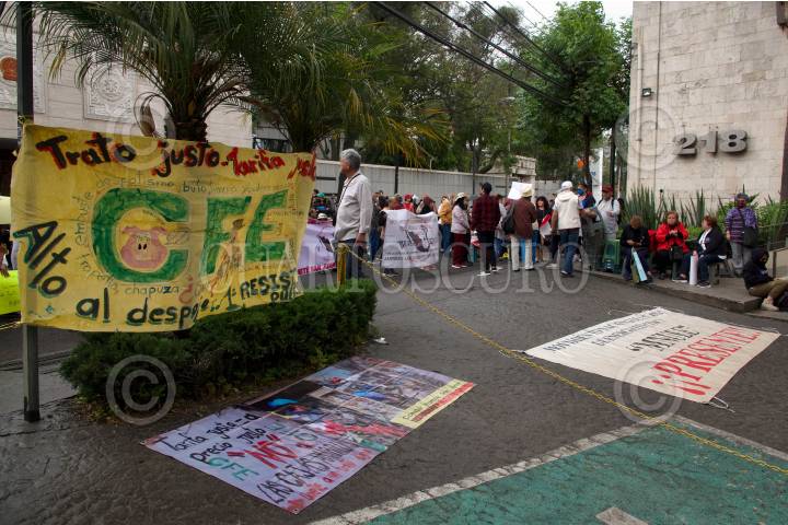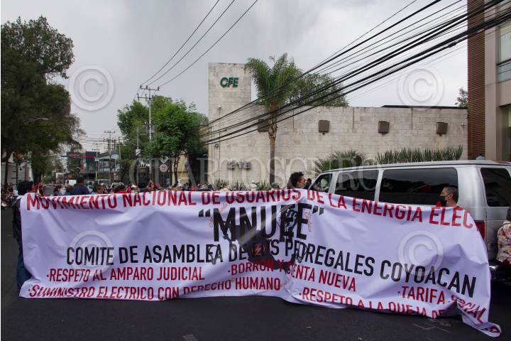 Protesta frente a CFE por supuestos cobros excesivos a usuarios.