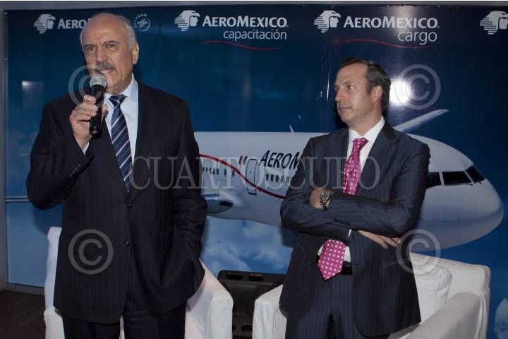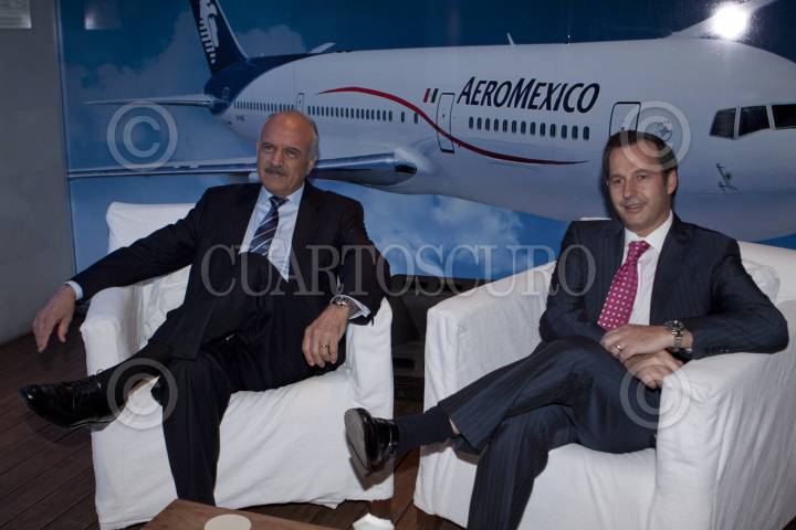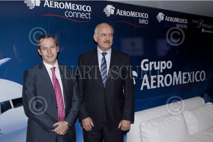 MÉXICO, D.F., 13DICIEMBRE2011.- Andres Consea, director general de Grupo Aeromexico y José Luis Barraza, presidente del consejo de administración de Aeromexico durante una conferencia en la reunión de fin de año con medios de comunicación en un hotel de la colonia Polanco. FOTO: RODOLFO ANGULO/CUARTOSCURO.COM