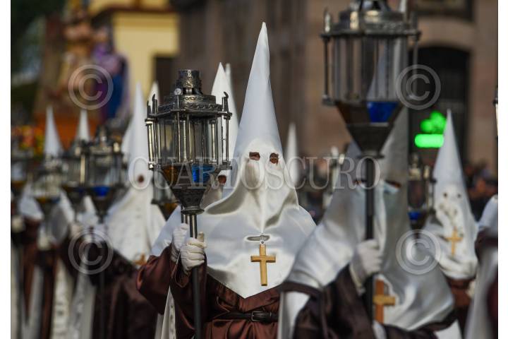 SANTIAGO DE QUERETARO, QUERETARO.- Como parte de las celebraciones de la semana santa se realizo la prosecion del silencio, donde penitentes circulan por las avenidas principales de la ciudad vistiendo con tunicas y capirote de distintos colores, dependiendo de las cofradias, dicha prosecion se festeja desde 1968. FOTO: EZEQUIEL TLAXCALA/CUARTOSCURO.COM