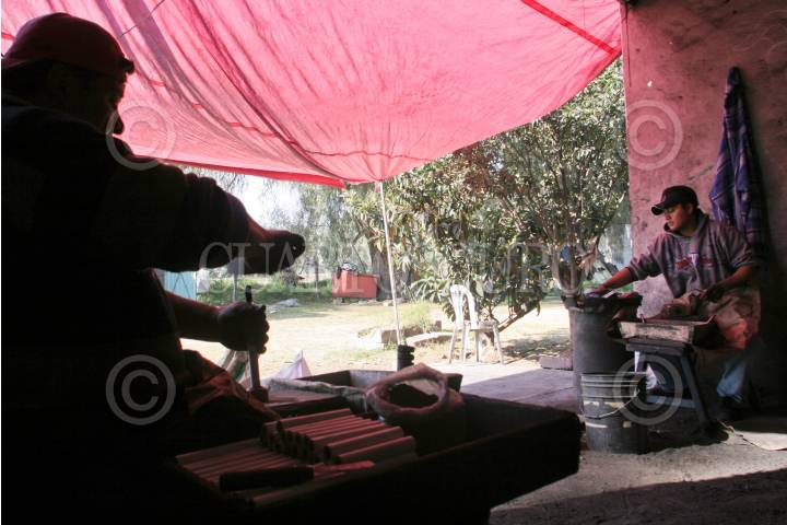TULTEPEC, ESTADO DE MÉXICO, 22DICIEMBRE2009.- La producción artesanal de juegos pirotécnicos en este municipio, es una de las principales fuentes de ingresos, ya que decenas de familias se dedican a este oficio que en ocasiones se hereda de generación en generación. FOTO: ENRIQUE ORDÓÑEZ/CUARTOSCURO.COM